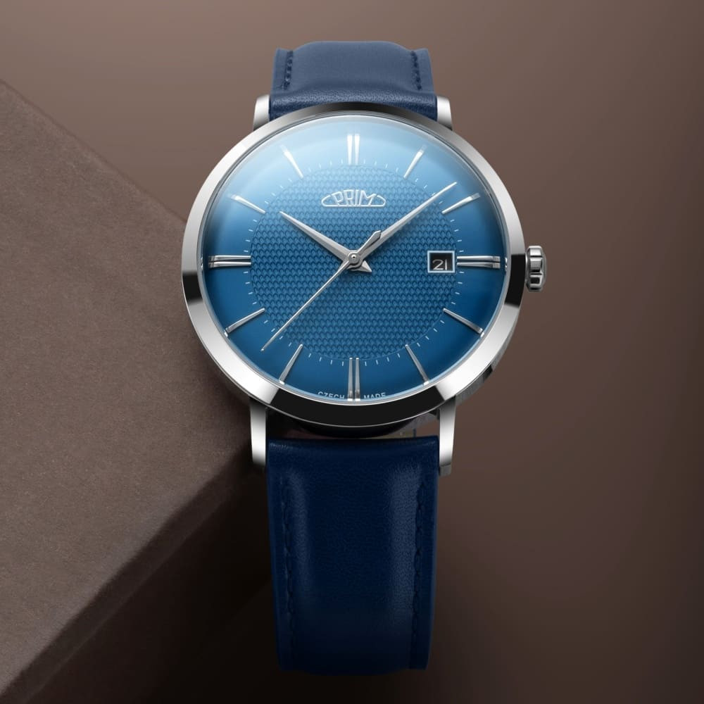 The attractive combination of case and dial colours in multiple variations, the date in the colour of the dial and delicate indexes accentuate the minimalist concept of the entire concept of this watch and pay tribute to the Czech watchmaking world. A young aspiring designer participated in their design and her task was to draw inspiration from the 1960s.