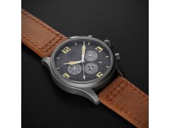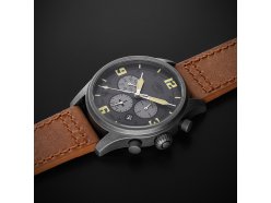 A szíj erős steppelt pilóta stílusú bőrből készült, amely tökéletesen kiegészíti a modell repülős jellegét. A 10 ATM vízállóságnak köszönhetően ideális partner az utazáshoz és a sportoláshoz.