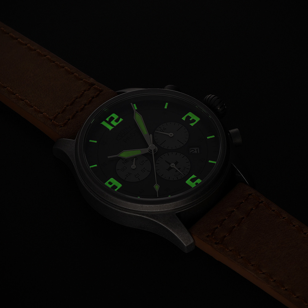A dizájnt az eredeti lumineszcens pilóta iránymutató egészíti ki a hibátlan tájékozódás érdekében éjjel-nappal. Az urak az újonnan választott pilótakoronát is értékelni fogják, amelyet kifejezetten ehhez a modellhez fejlesztettünk ki.
