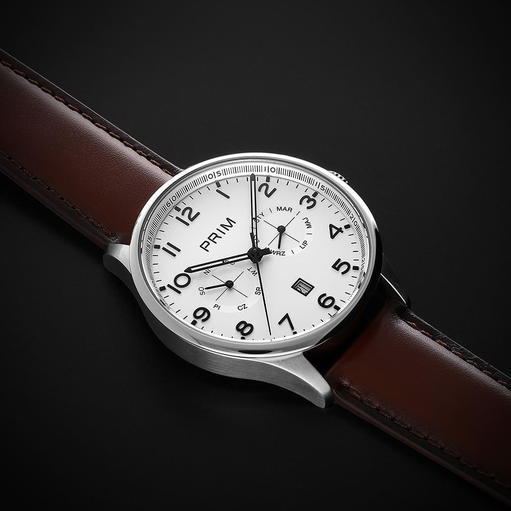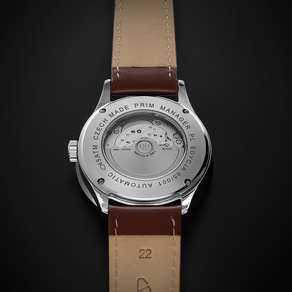 PRIM MANAGER 2025 – sportovně elegantní model v různých barevných provedeních. Spolehlivý automat s kalibrem Miyota 9122, safírovým sklem a podsvícenými indexy, který zaujme na každé pánské ruce.