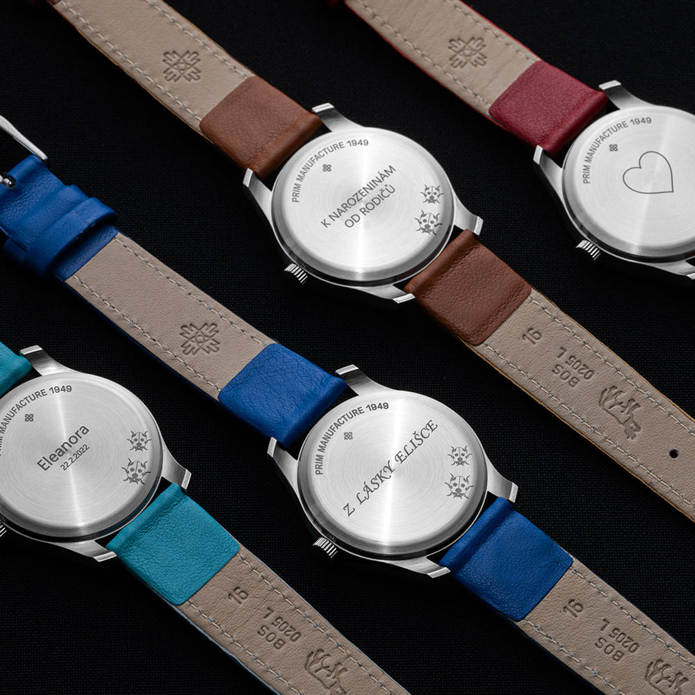 Na první hodinky se nezapomíná. Proto jsme PRIM BERUŠKY navrhli tak, aby se jejich každodenní nošení stalo radostí. Díky přehlednému číselníku se bude dobře určovat čas i menším dětem. Pohodlný kožený řemínek se snadno zapíná a safírové sklíčko je odolné proti poškrábání i drobným nehodám. Lehké pouzdro z nejkvalitnější nerezové oceli je ideální pro citlivou dětskou pokožku.