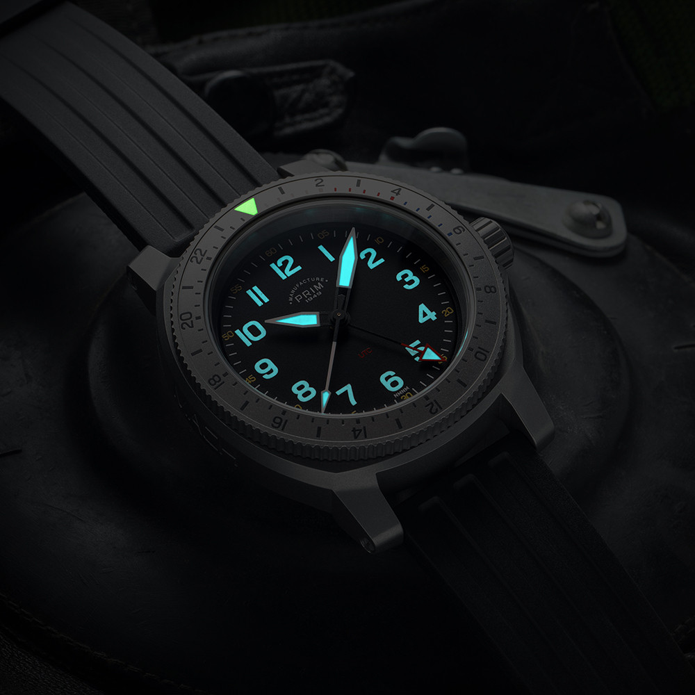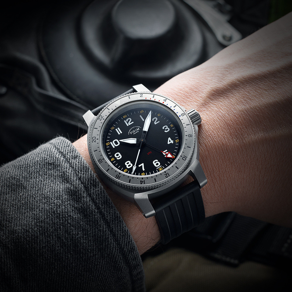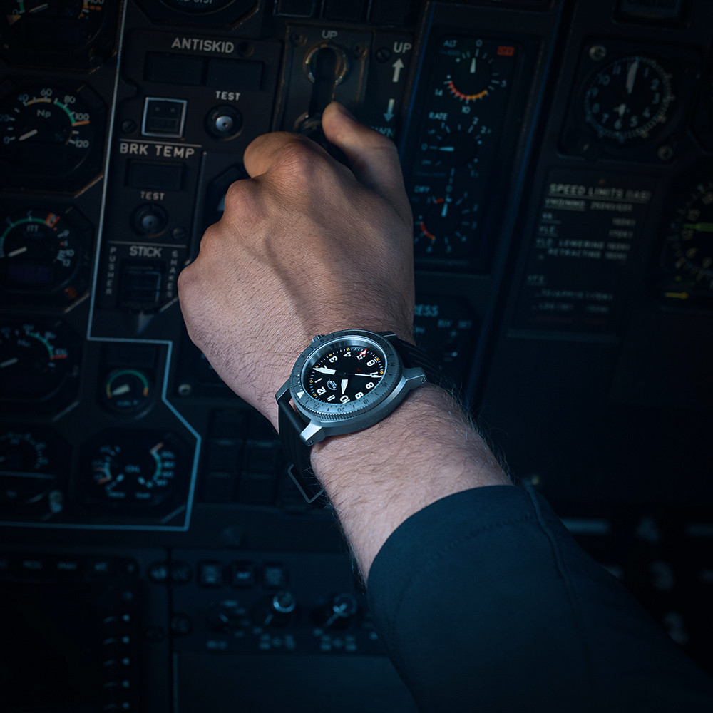 Lehkost a komfortní nošení poměrně robustního pouzdra zajišťuje titan. Materiál, který vyniká svojí lehkostí a odolností stejně, jako atraktivitou a pořádnou dávkou charisma. Číselník je navržen s důrazem na čitelnost. Umožňuje odečet času jak pomocí hlavní stupnice, tak na jedné ze dvou stupnic
