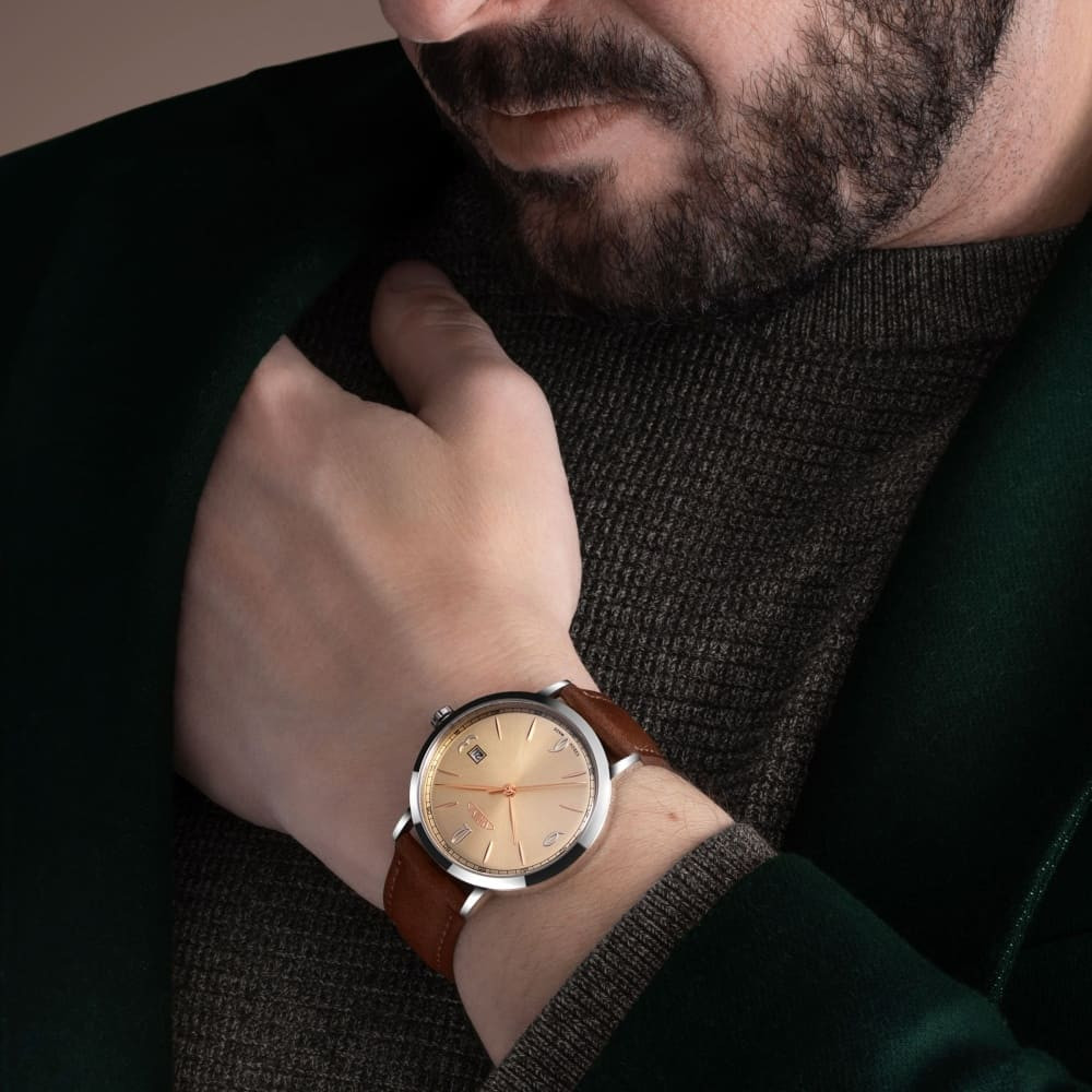 Atraktivní kombinace barvy pouzder a číselníků ve více variantách. Datum v barvě číselníku společně s jemnými indexy doplněnými číslicemi 3, 6, 9 a 12 akcentují minimalistické pojetí celého konceptu těchto hodinek a skládají poklonu českému hodinářskému světu. Na jejich designu se podílela mladá začínající, jejímž úkolem byla inspirace 60. léty minulého století.