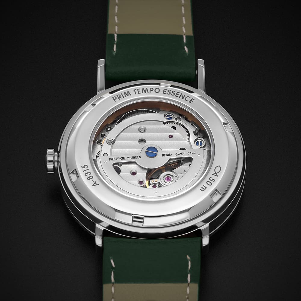 Uvnitř hodinek pracuje kvalitní a spolehlivý japonský strojek Miyota 8315 s funkcí zobrazení data. Klenutý číselník, leštěné ručičky a indexy, dvojité klenuté safírové sklíčko a jemná struktura číselníku vyzdvihuje eleganci i praktičnost tohoto modelu.