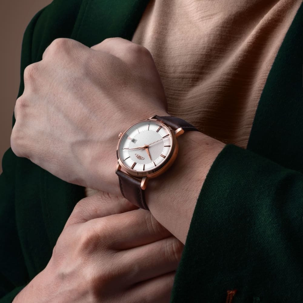 Dvojité klenuté safírové sklíčko, číselník s překrásnou strukturou a jemnými leštěnými ručkami. To jsou detaily, které oceníte při každém pohledu na hodinky. V tu chvíli se z elegance a noblesy stává praktičnost a spolehlivost.