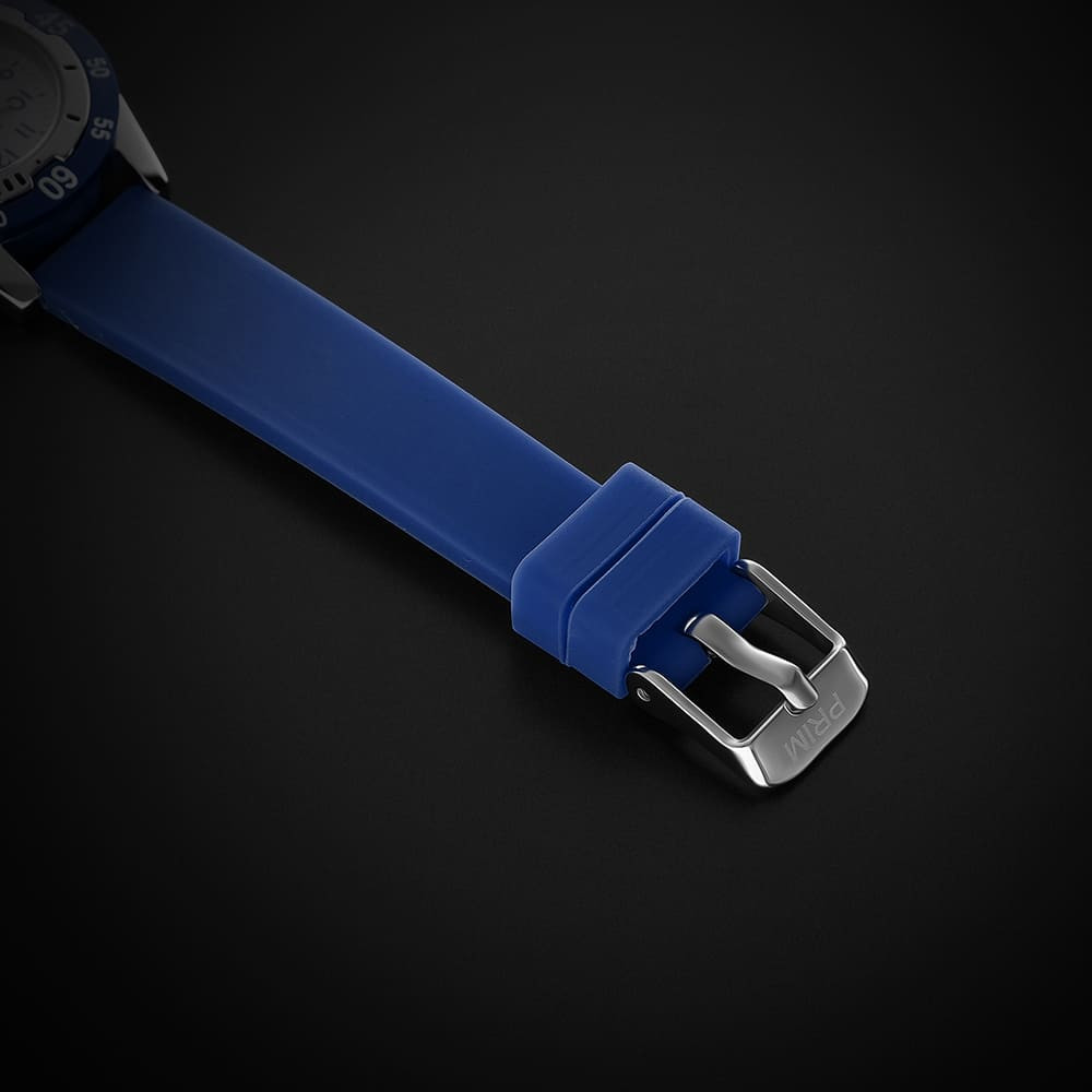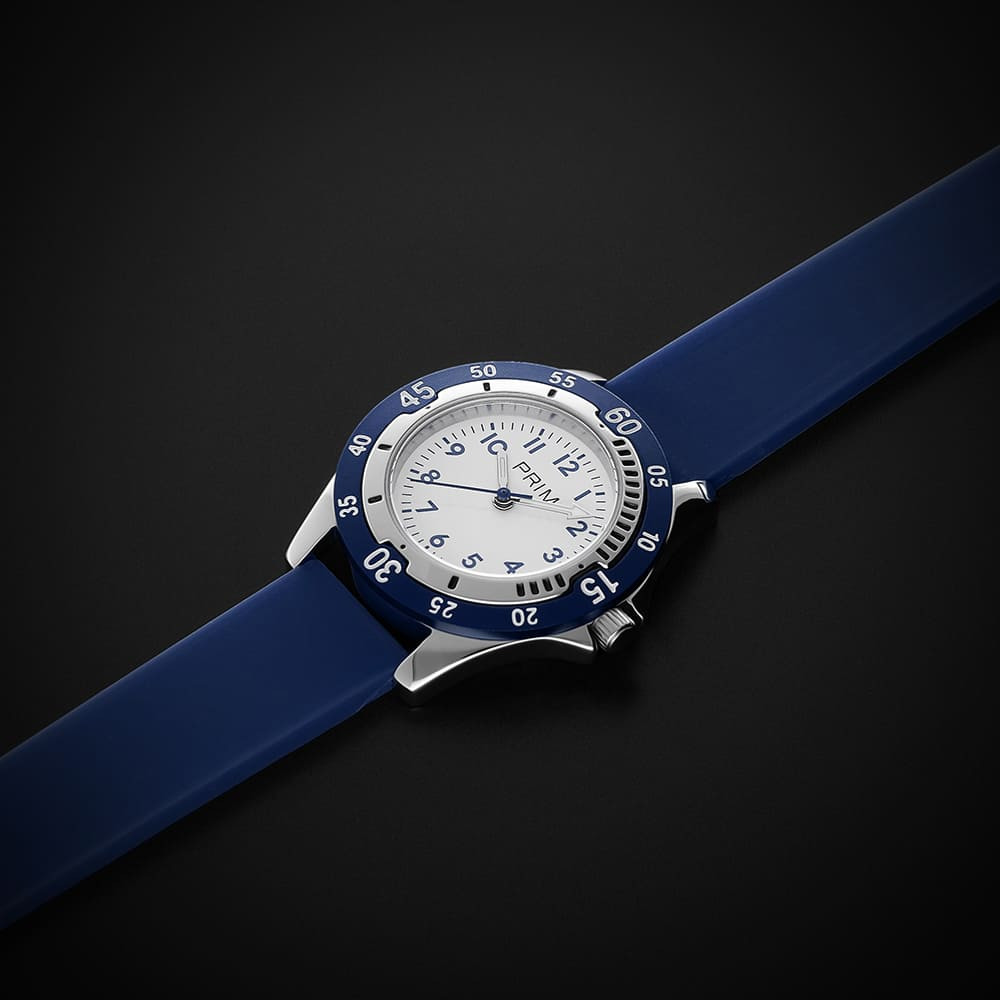 Tým grafiků se nechal inspirovat čitelným a lehce rozpoznatelným ciferníkem s arabskými číslicemi v barvách kroužku a doplnil model barevnými ručičkami. Zvolili jsme také pestré barvy, ze kterých si vybere každý školák a naučí se tak rozpoznávat čas na svých prvních PRIM hodinkách. Praktické je také zobrazení minut na fixním okruží, které pomohou rozpoznat čas. Hodinky jsou kompletně vyrobeny z nerezové oceli 316L a s voděodolností 10 ATM. Celkový vzhled doplňuje barevný příjemný silikonový řemínek.