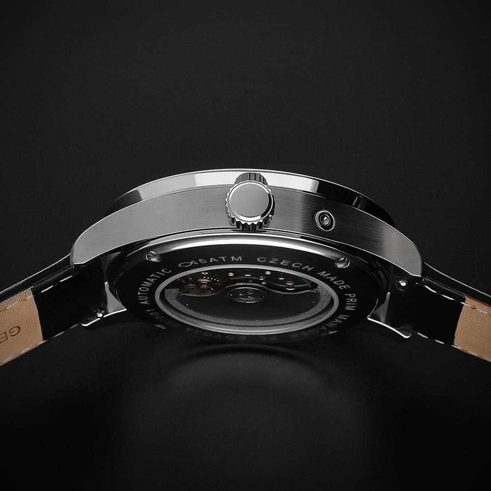 Pánske automatické hodinky PRIM Manager PL 25 - K - ušľachtilé nehrdzavejúce púzdro - černy/strieborný ciferník