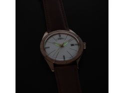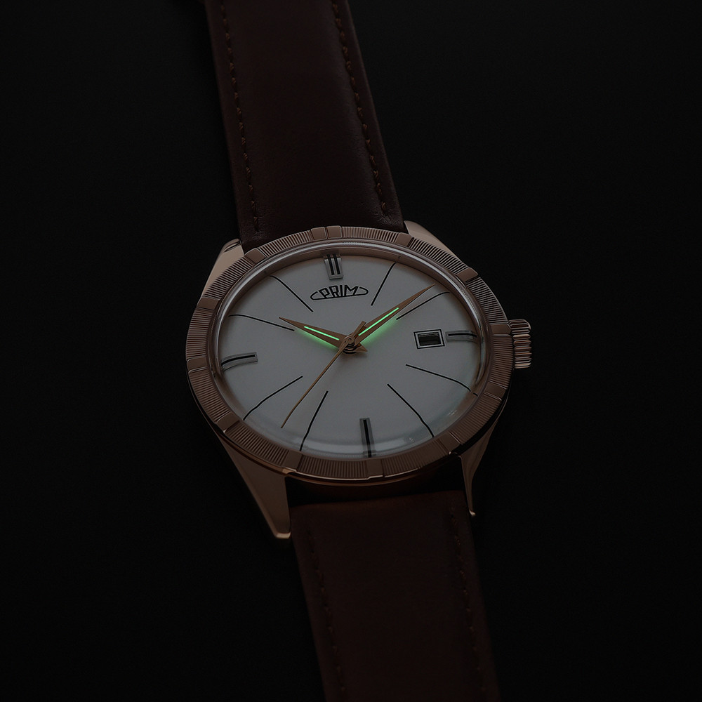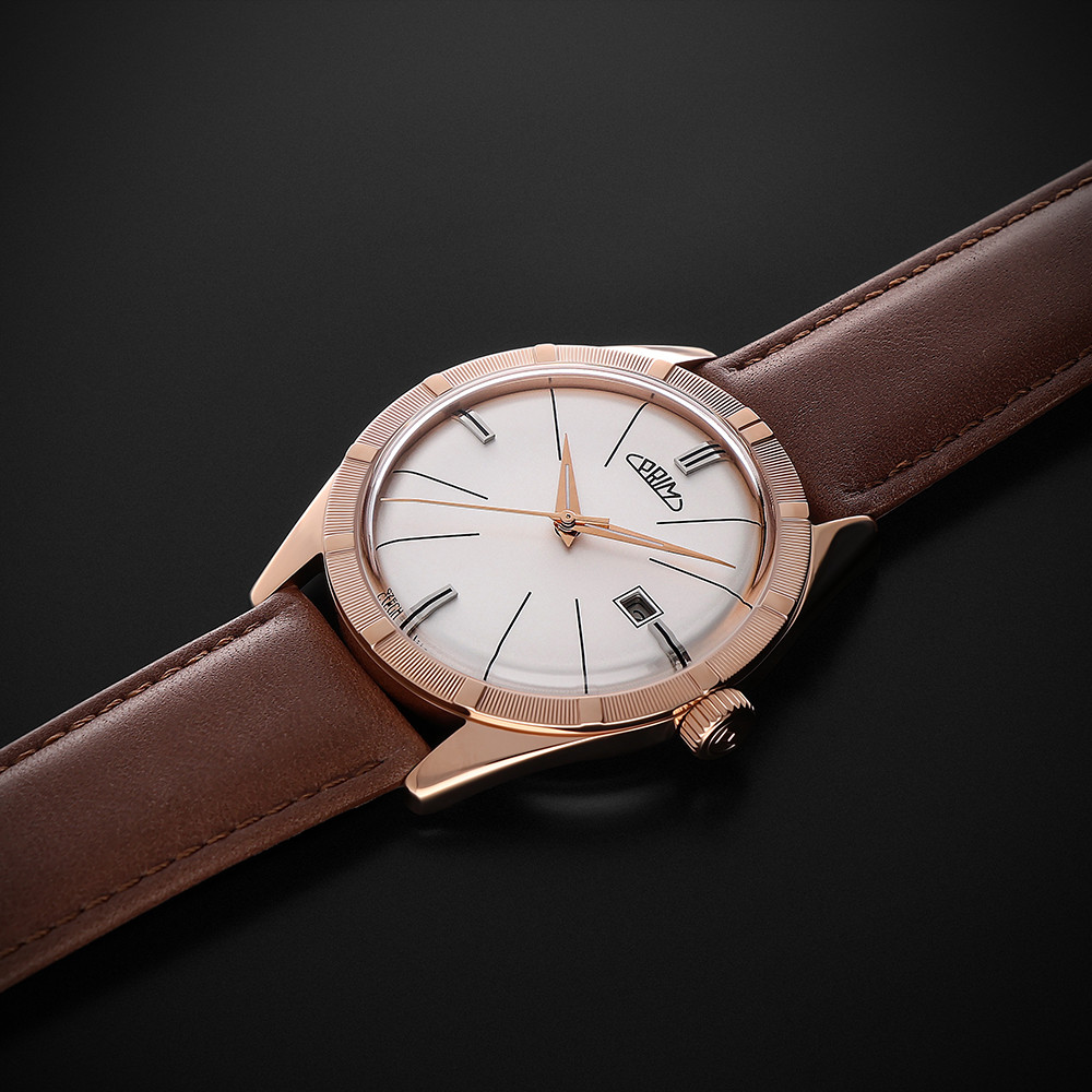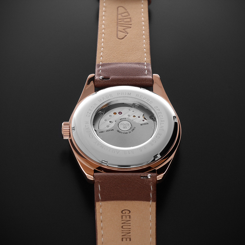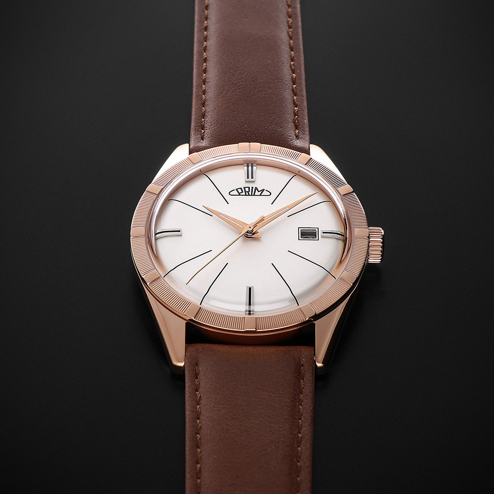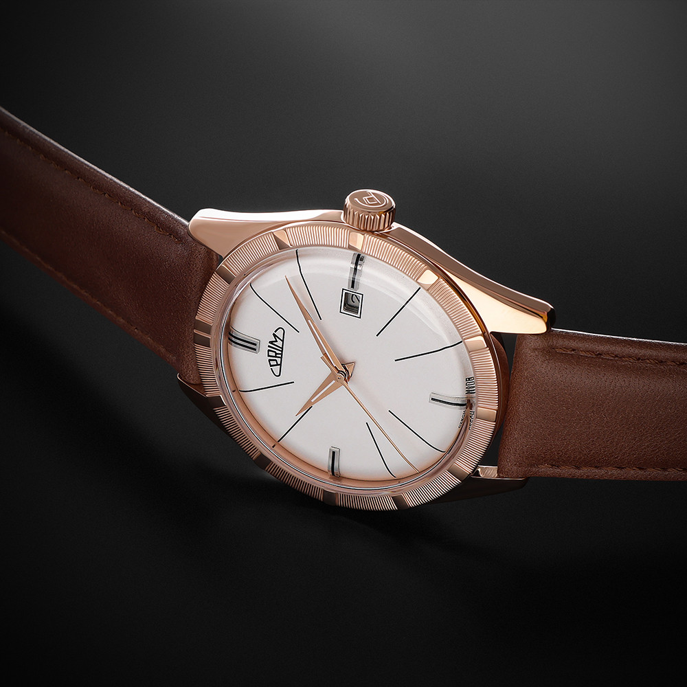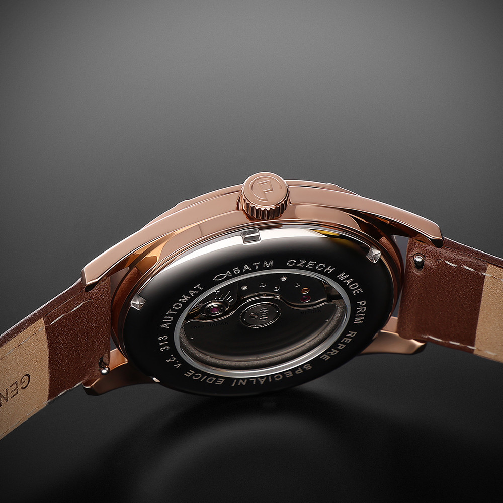 Úspešný model PRIM Repre v nových jesenných farbách. Model v sebe kombinuje elegantnú klasiku zo 60. rokov v novom prevedení. Jedná sa o klasické, elegantné a spoločenské hodinky, ktoré zaujmú na zápästí každého muža. Originálom je najmä ciferník v elegantnom lakovanom prevedení s tradičným motívom inšpirovaným 60. rokmi rovnako ako zdobenie lunety ako tomu bolo zvykom pri modeloch vyrábaných v minulosti.